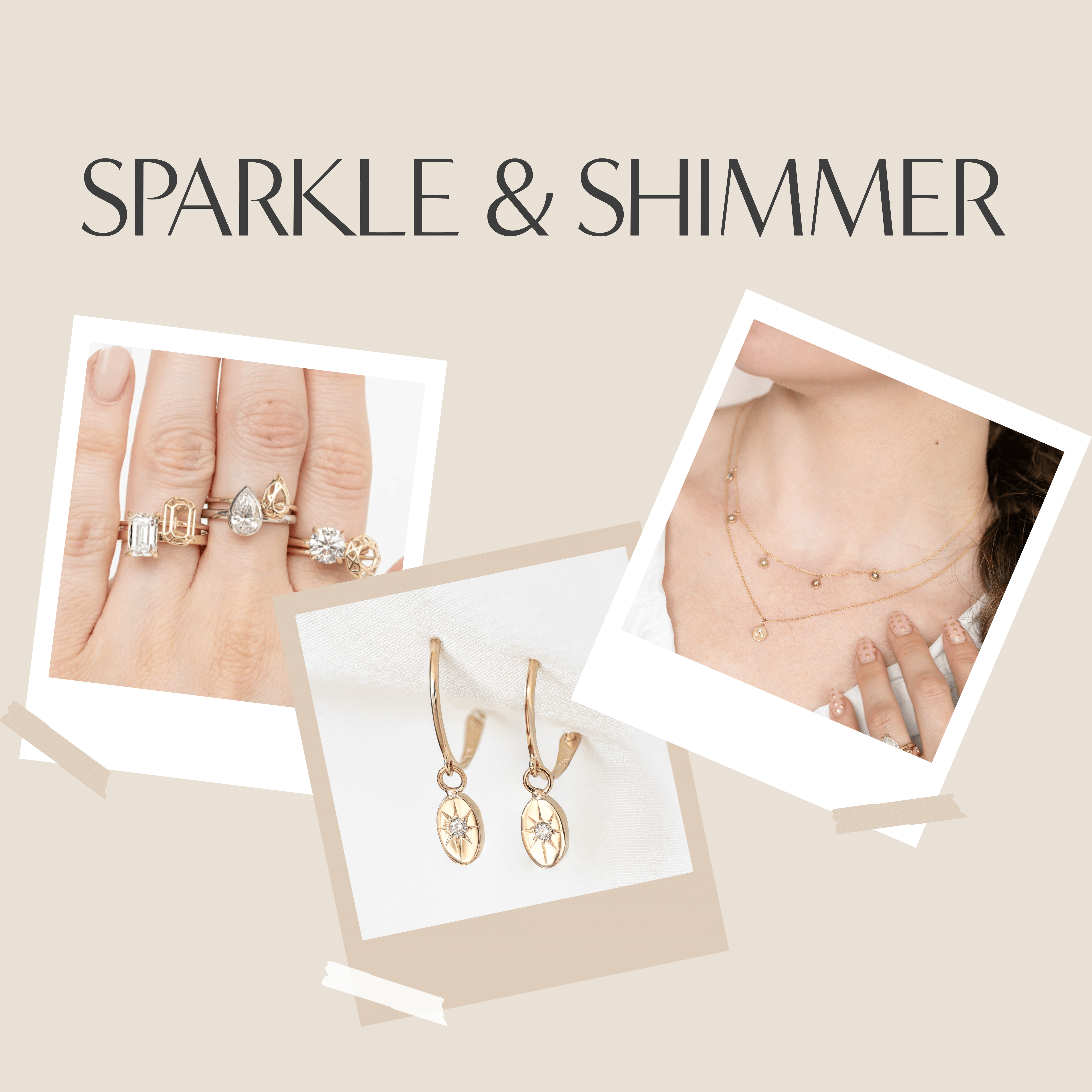 Crafted from reclaimed materials - gold from our own casting process and diamonds from heirloom jewelry - each design has a sustainable sparkle that feels timeless and modern. Twilight is designed to shine in your everyday orbit with star pavé-set recycled diamonds. Soleil radiates light and movement with handmade gold links and glittering Herkimer diamonds (quartz), ethically mined in New York state. Moody, ethereal, and perfect for the dreamer who cares about where their jewelry comes from.
