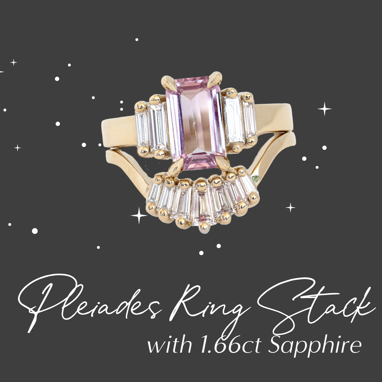 Pleiades Ring Stack with 1.66ct Sapphire by Elaine B Jewelry