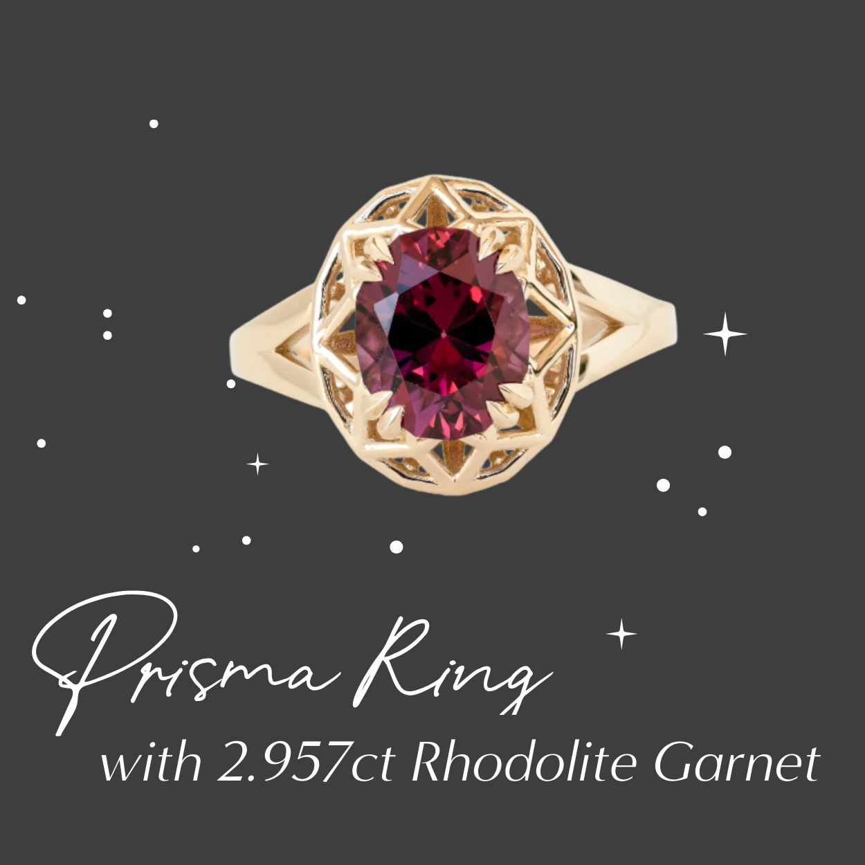 Prisma Ring with 2.957ct Rhodolite Garnet by Elaine B Jewelry