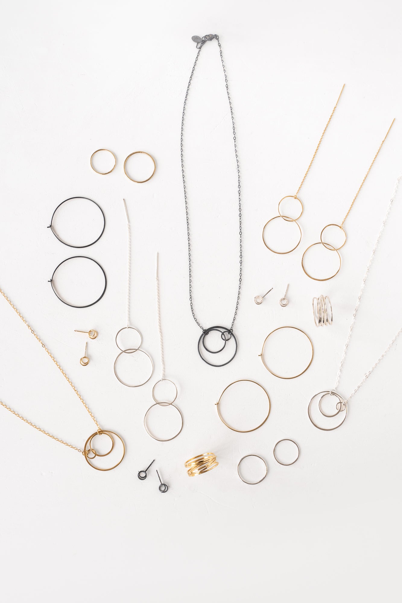 From the Concentric collection, hand formed circles link magically to form organic hoops on a necklace that move with a carefree weightlessness as you wear it. Sometimes you just want a "put it on and wear it all week" kind of necklace. This is it. You can shower in it, sleep in it, do yoga in it - just living life.