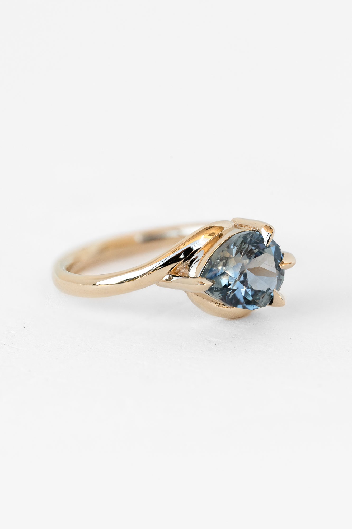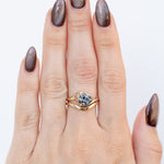 For this ring we've set a blue Montana sapphire. Mined by our friends on the Eldorado Bar, these fascinating stones change color with the light as well. Learn more about Montana sapphires.