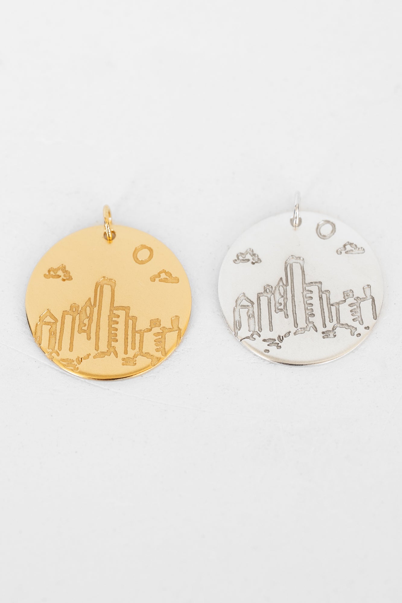 A hand-drawn engraving of the city is on one side, while the other offers space for your own words. Select your font and type your message of up to 8 words, lovingly engraved in our Cincinnati location.