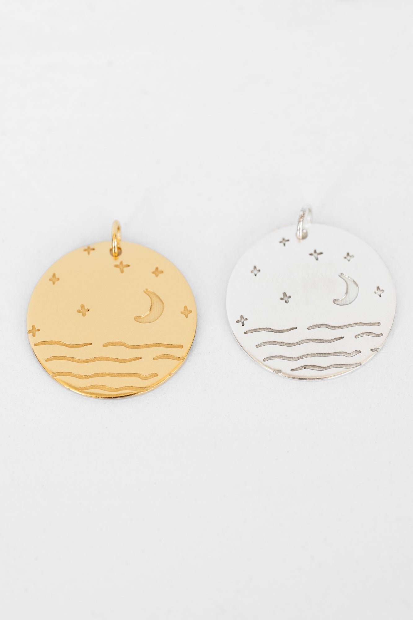 A hand-drawn engraving of the moon & stars is on one side, while the other offers space for your own words. Select your font and type your message using up to 50 characters, lovingly engraved in our Cincinnati location.