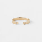 This open band creates a contemporary edge while maintaining timeless versatility. A single round diamond is bezel-set at each tapered end, adding a subtle touch of brilliance to its clean, minimalist design. Designed to be worn alone for understated elegance or stacked with your favorite bands for a layered look.