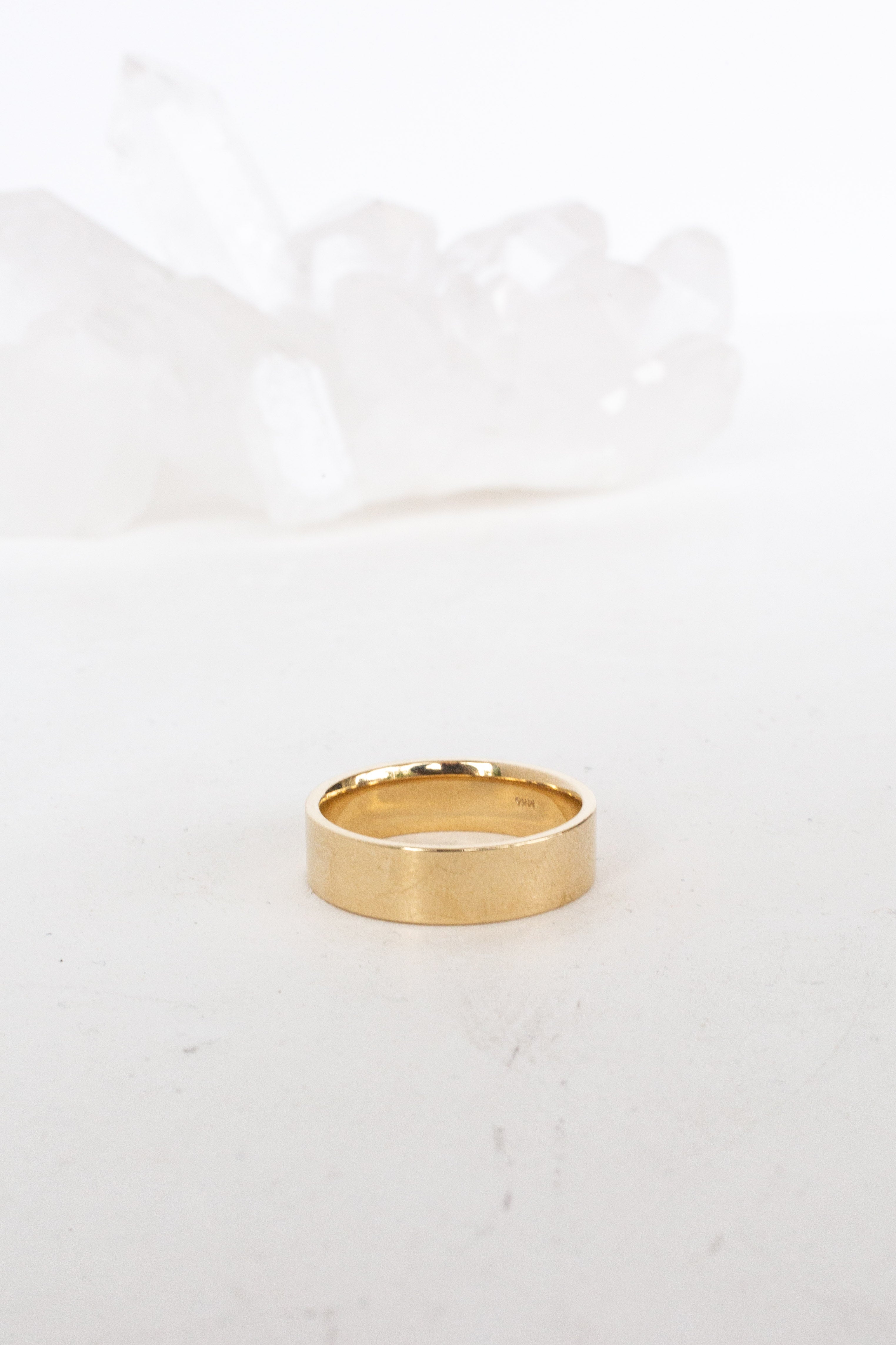Modern and minimal, this band ring features a flat profile with clean lines and a sleek finish. Contemporary in style yet timeless in meaning, it delivers understated sophistication that pairs effortlessly with any look.