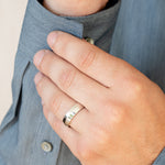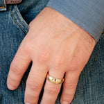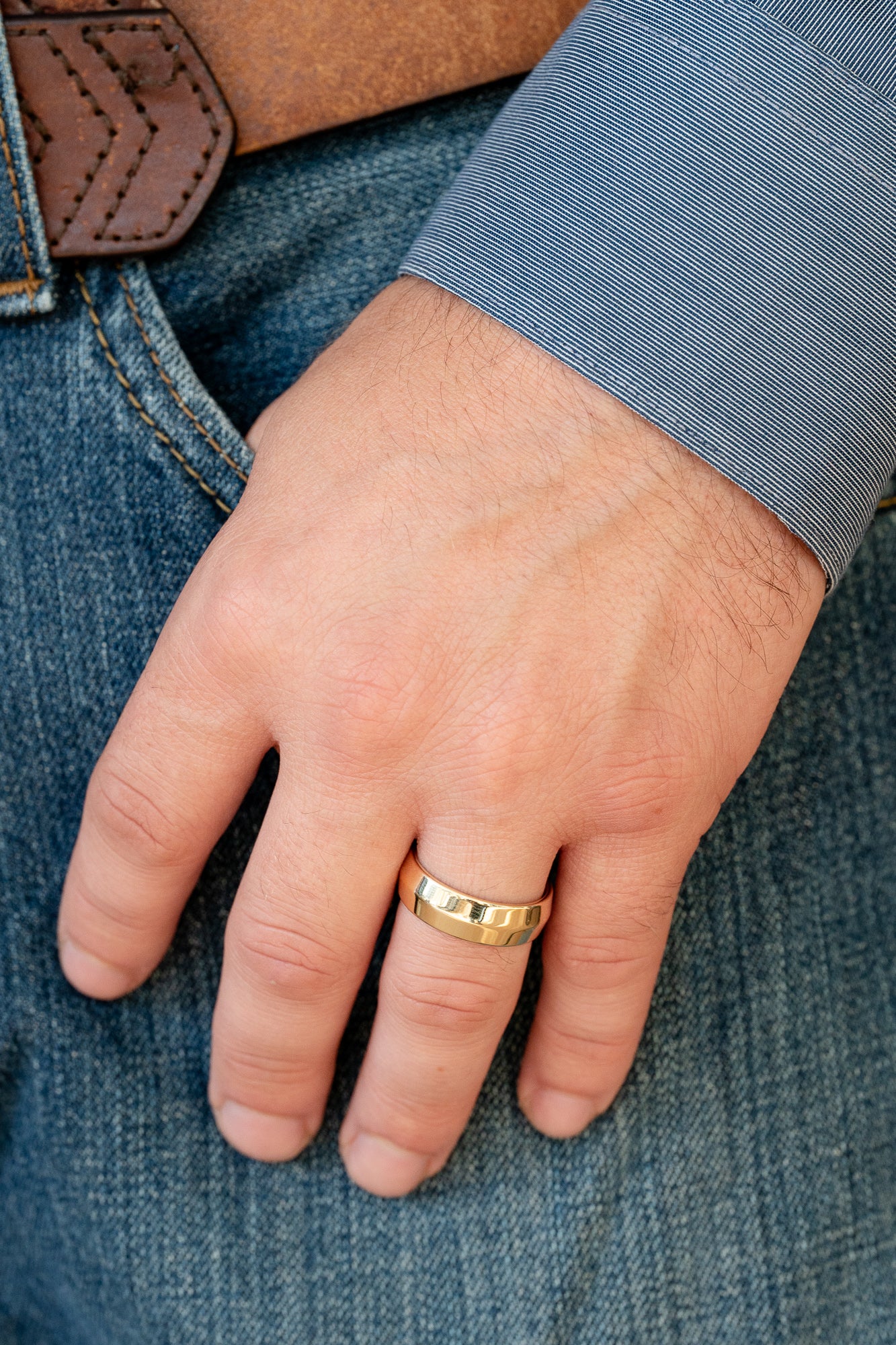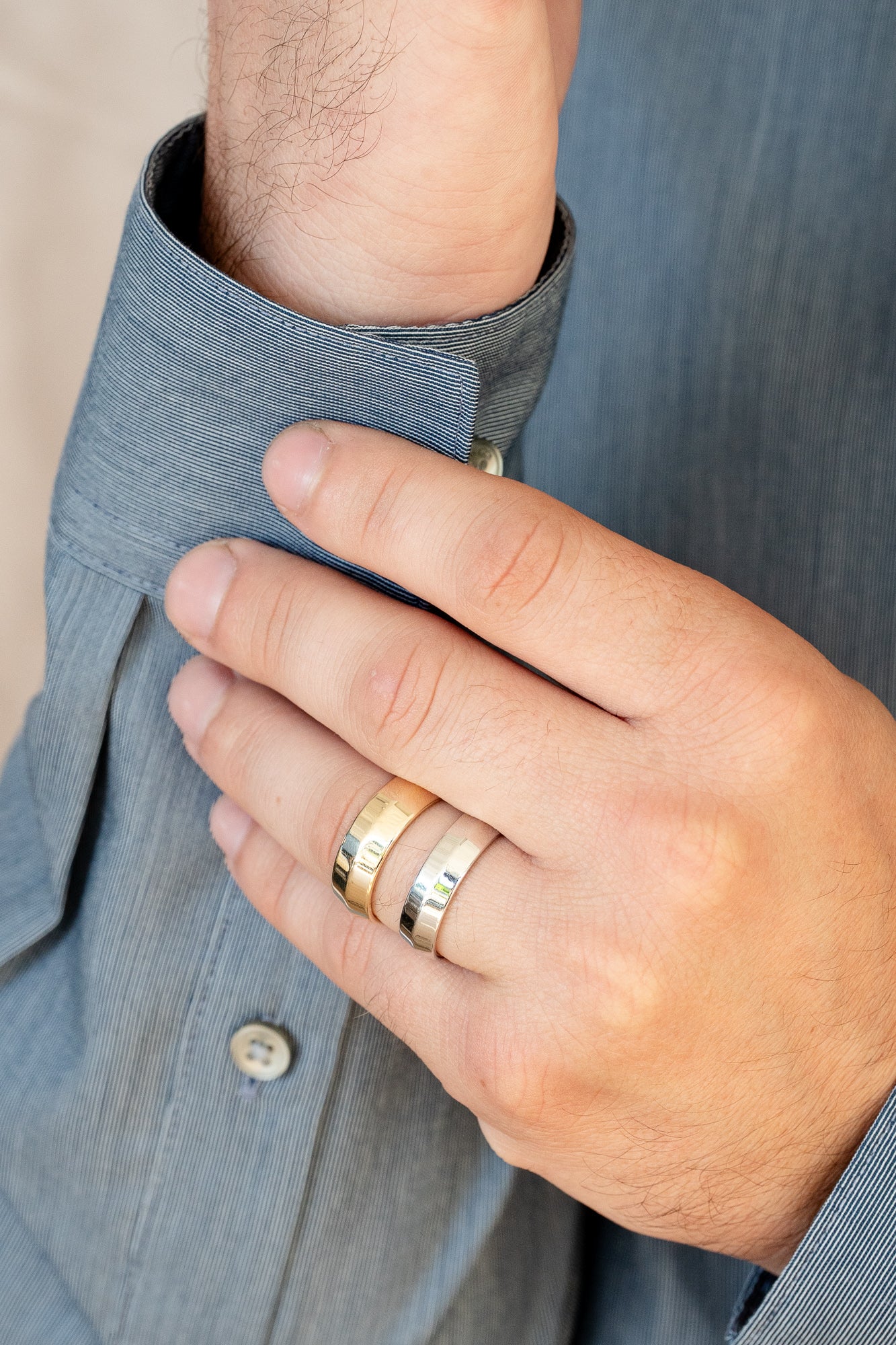 Sleek and striking, this band ring is defined by a subtle knife-edge profile that creates clean angles and a sculpted silhouette. Modern yet classic, it’s a bold design that symbolizes strength and commitment.