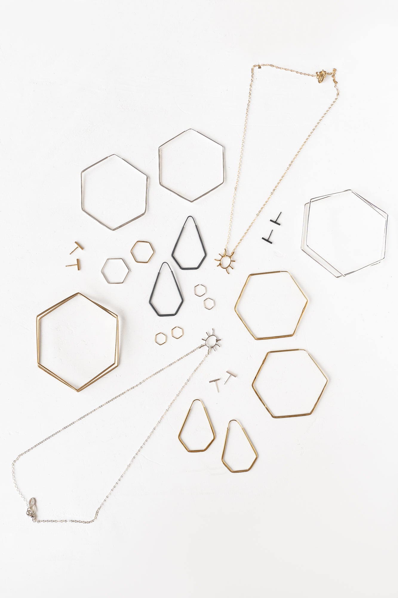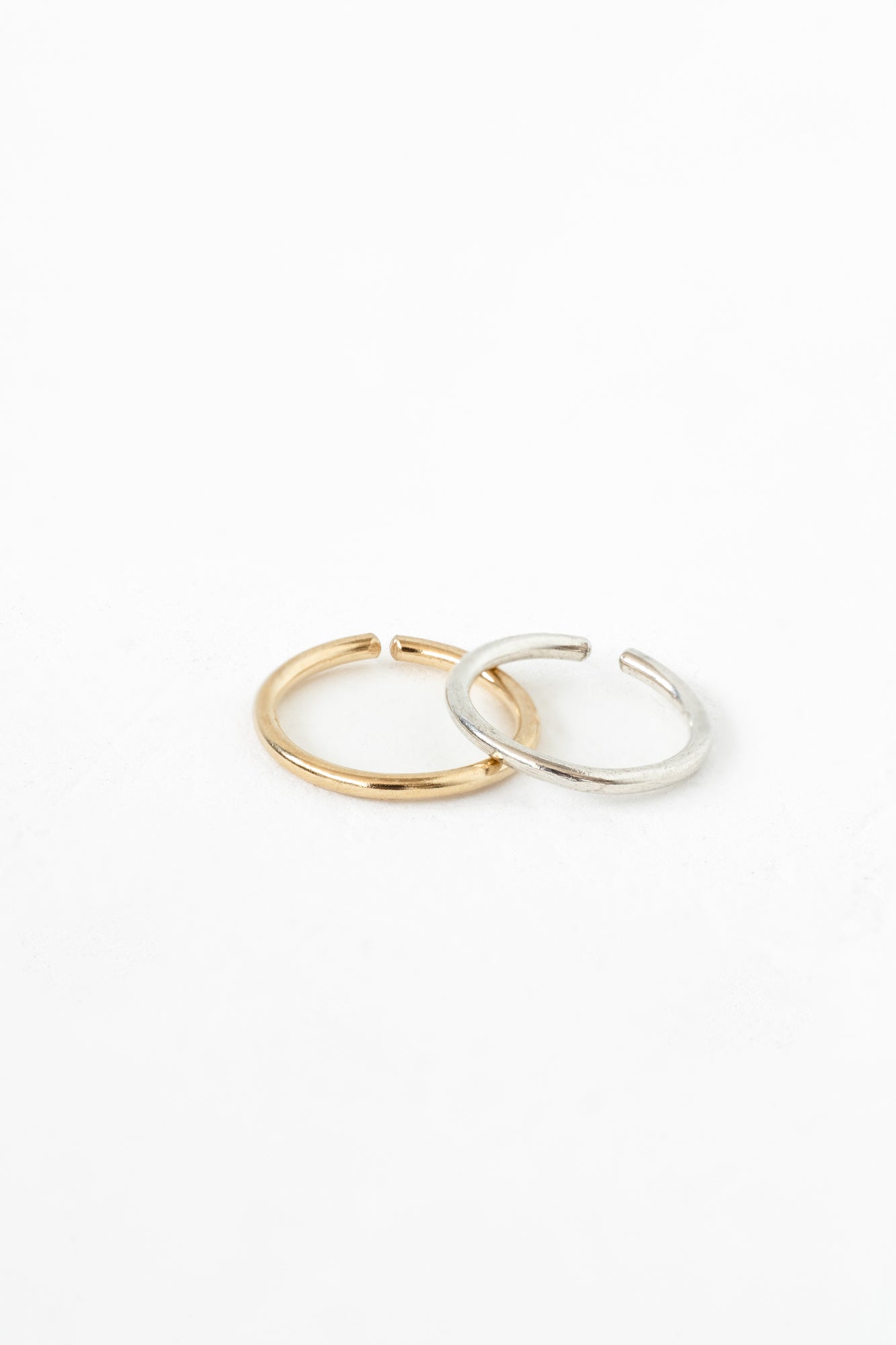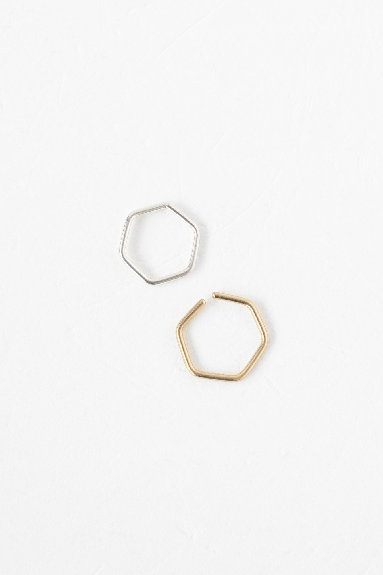 Delicately hand formed shapes shift your perspective of minimalist everyday jewelry. Made in a classic hoop form, or a more modern hexagon - these are the perfect hoop to put in and forget about - made to stay put as long as you want. Put them in your ear, in your nose, up high, down low, we won't judge. Sold as a single piece, buy one or more to complete your look.