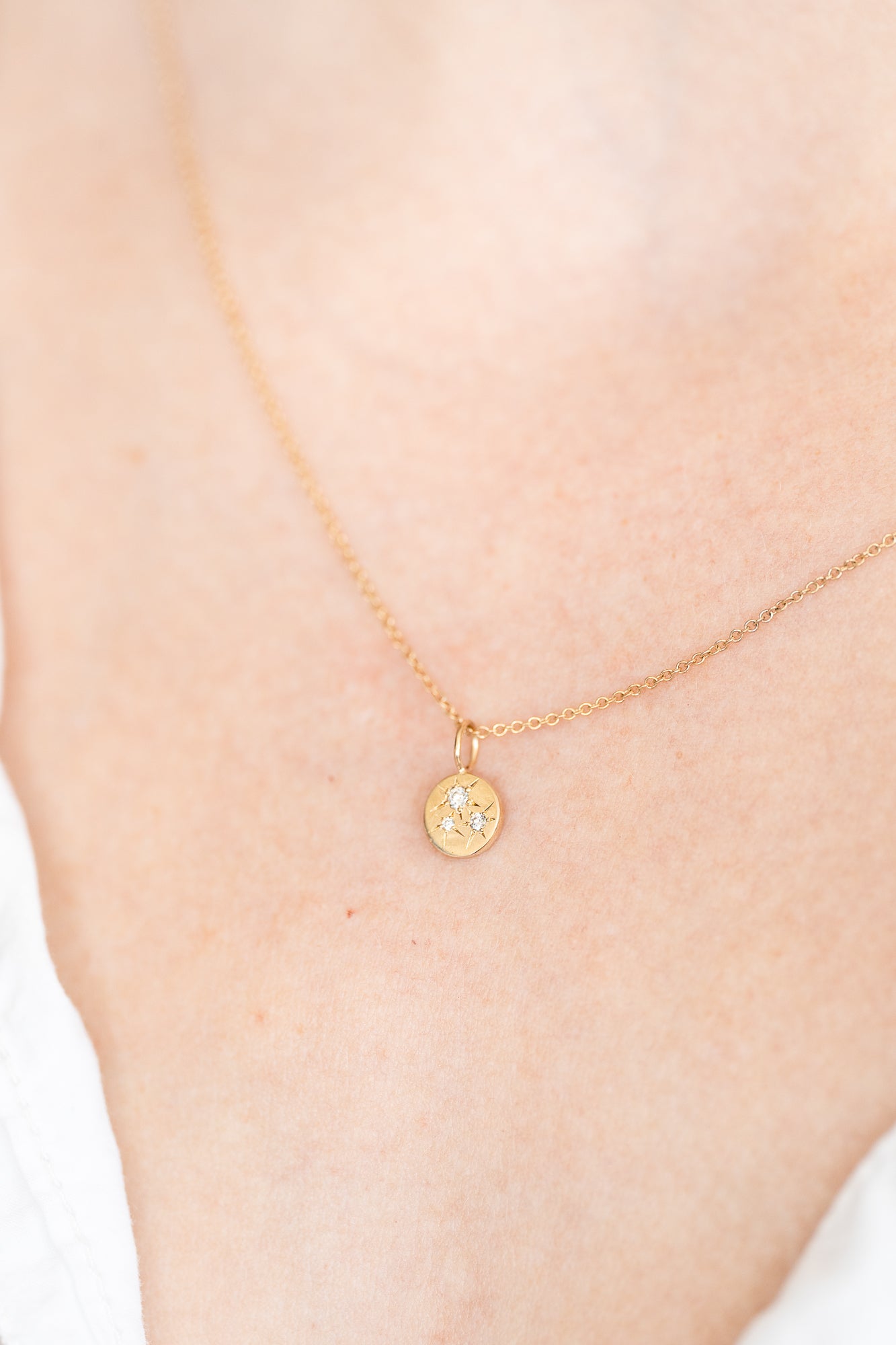 Capture the quiet magic of the night sky with star pavé-set recycled diamonds that shimmer. This pendant is designed to shine in your everyday orbit and is available with or without chain for maximum versatility.